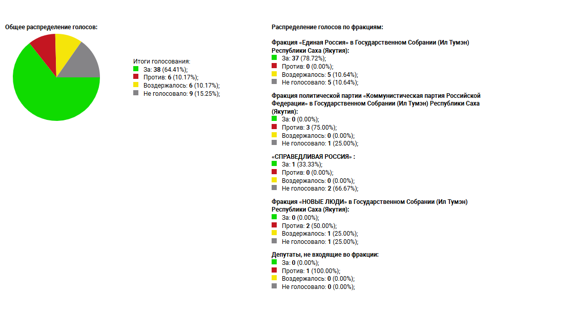 За отстранение Владимира Поскачина, обвиняемого в хранении боеприпасов, отдали голоса 38 парламентариев. Из них 37 принадлежали к «Единой России», а один — к «Справедливой России».