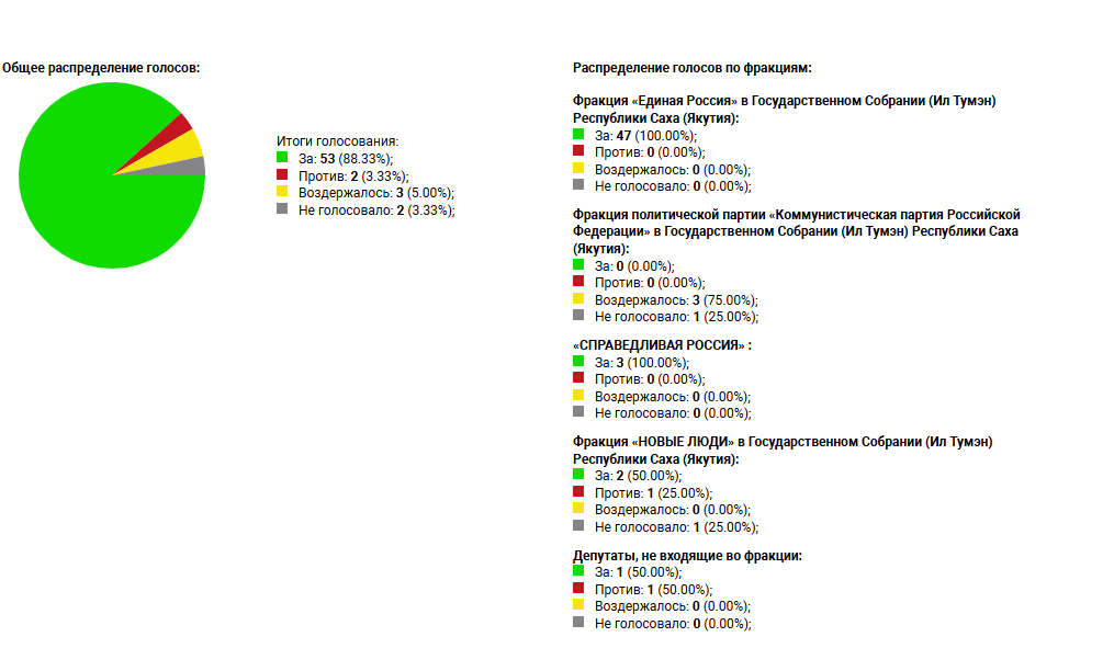 За лишение полномочий Александра Иванова* проголосовали 53 депутата. В их числе оказались 47 представителей «Единой России», трое из «Справедливой России» и двое от партии «Новые люди». Против этого решения выступили только двое: Василий Николаев («Новые люди») и Владимир Поскачин.