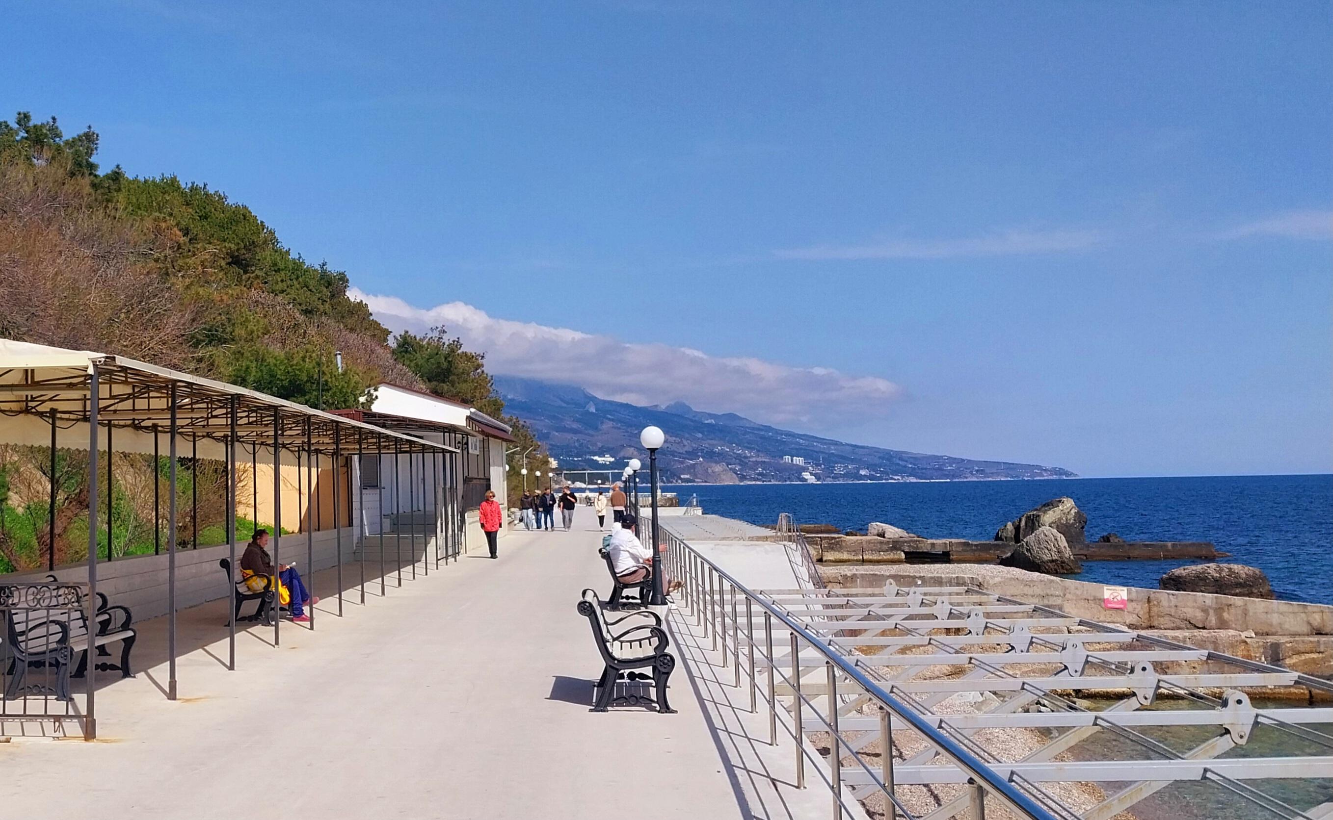 Набережные южного берега Крыма в мае еще не заполнены туристами, что позволяет спокойно прогуляться у моря.