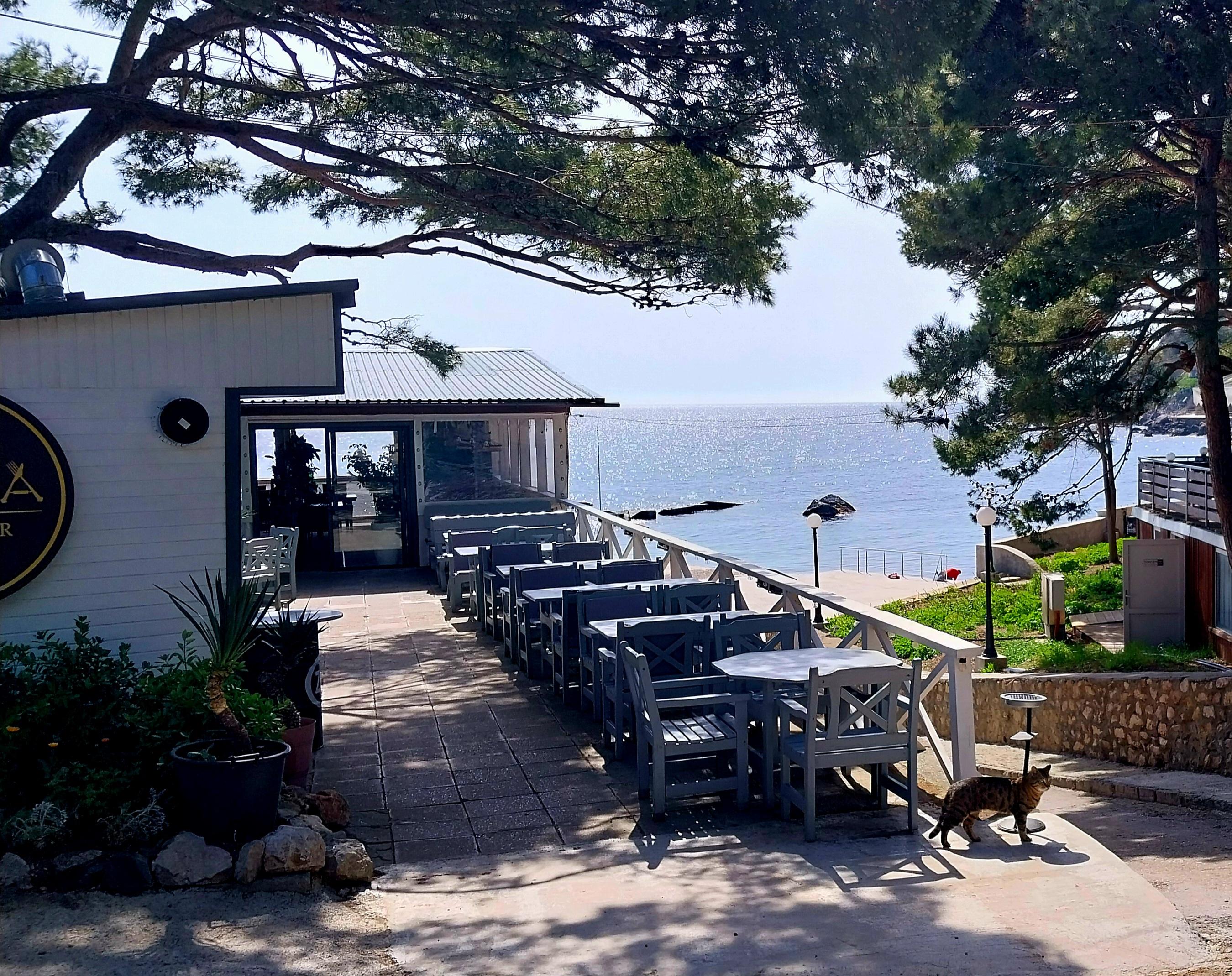 Летние площадки кафе на побережье готовятся к приему гостей, пока их частыми посетителями остаются местные животные.